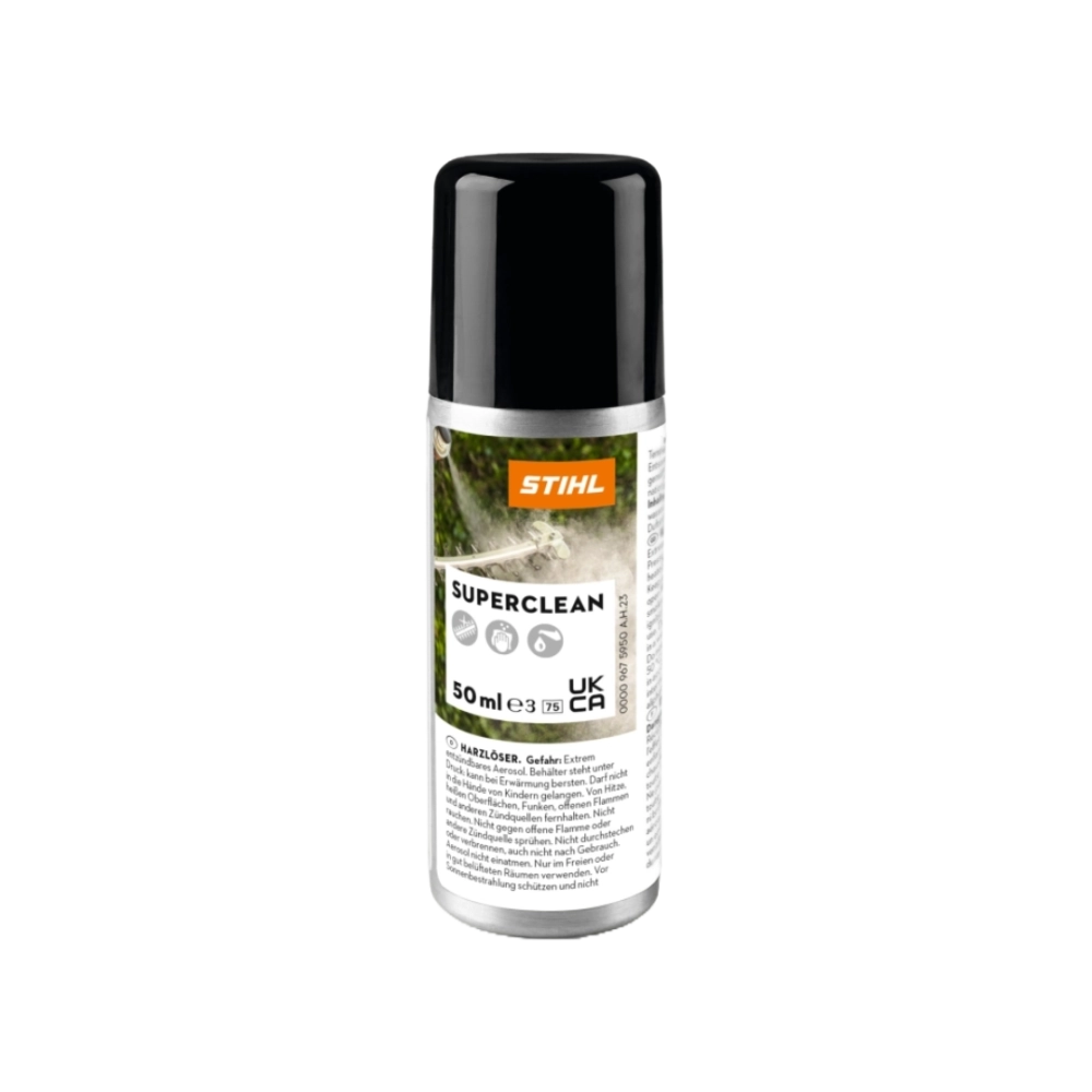 Spray avec double fonction : dissolution de la résine et des salissures, lubrifiant et protection anti-corrosion. pour dispositifs de coupe, couteaux de taille-haies et tronçonneuses. Capacité de stockage : 3 ans.